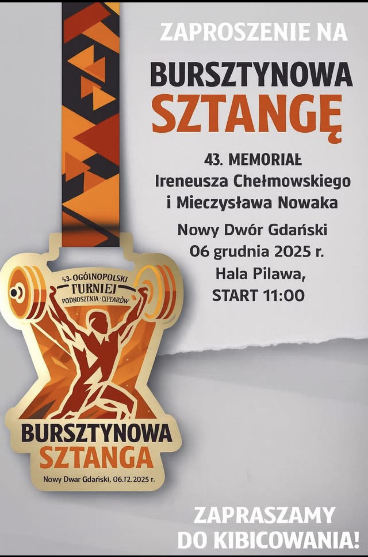 Już w najbliższą sobotę 43.Turniej w Podnoszeniu Ciężarów „Bursztynowa Sztanga” Memoriał Ireneusza Chełmowskiego i Mieczysława Nowaka 2025